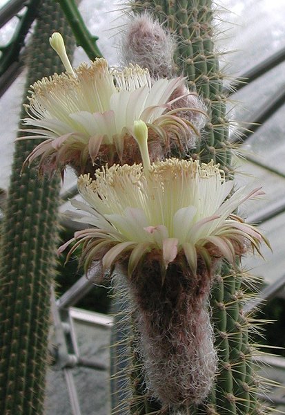 Weberbauerocereus: A ceroid cactus complex from Peru considered to be intermediate between Trichocereus and Loxanthocereus. Flowers can resemble Trichocereus or Loxanthocereus or somewhere in between. Named by Backeberg after Prof. August Weberbauer who did extensive research in the Peruvian Andies. Some species still rare in cultivation.